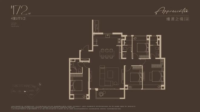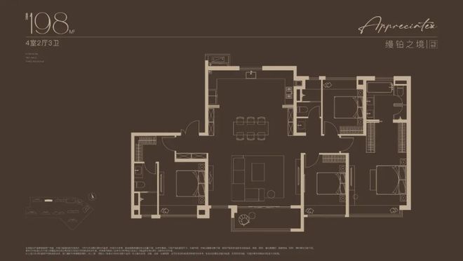 一步到位的宽奢4房!这是一个超大横厅的飞机户型,尺度感超强,餐厅甚至能放下一个8人桌,让一家人享受天伦。