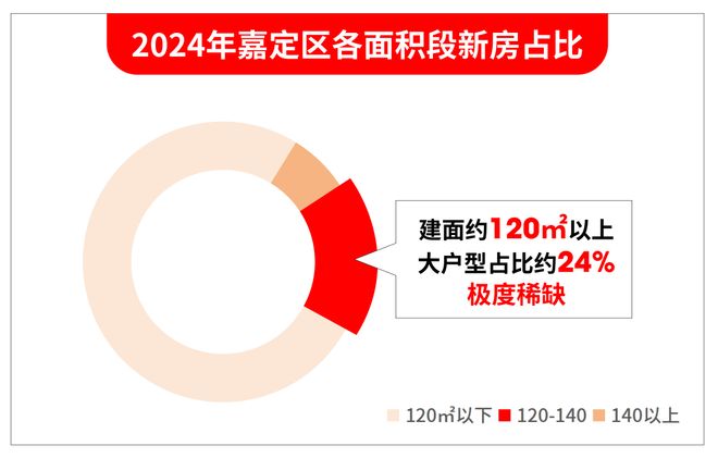 整个嘉定目前还是以百平米左右3房为主力供应段,建面约120㎡以上的产品今年仅占比约24%,极度稀缺