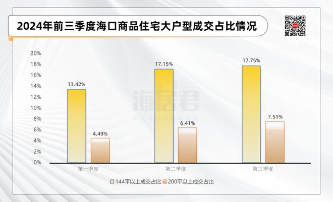 海南房地产专业研究机构“至理数据”备案数据显示,2024年大户型成交占比连续两个季度上涨。