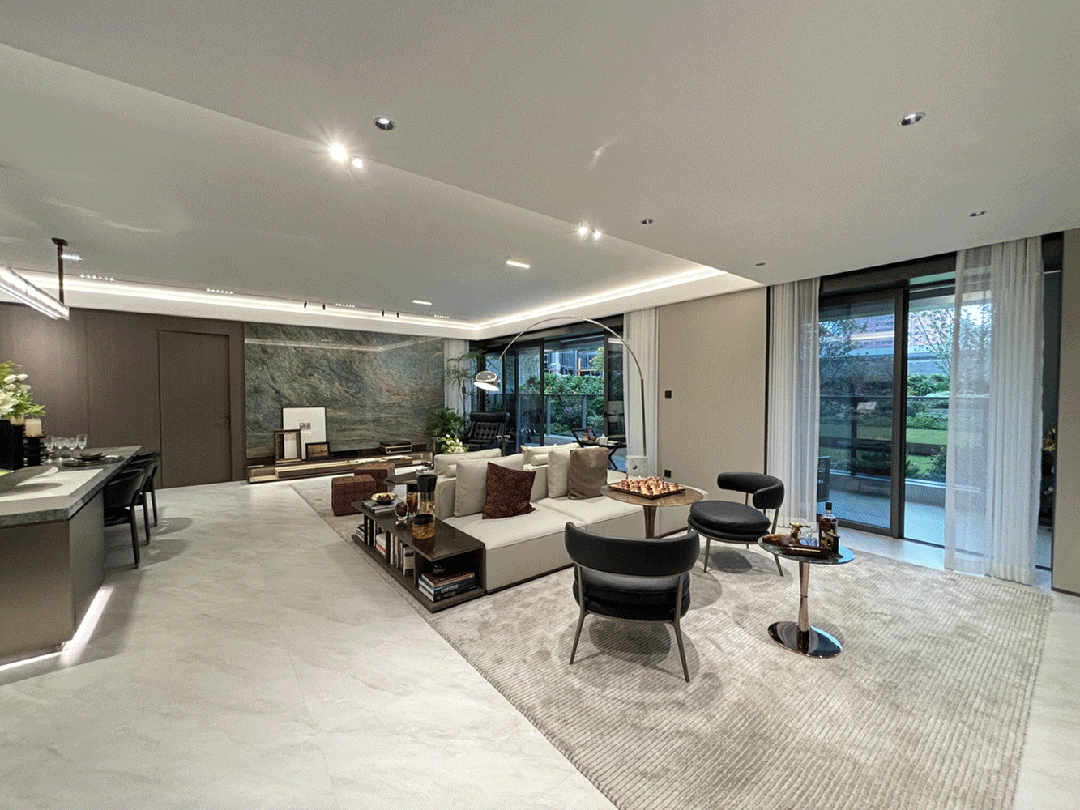 整个约17.4米长的南向空间如同一个巨幕采光间,自然光线弥漫整个区域,营造出奢适的居住体验。
