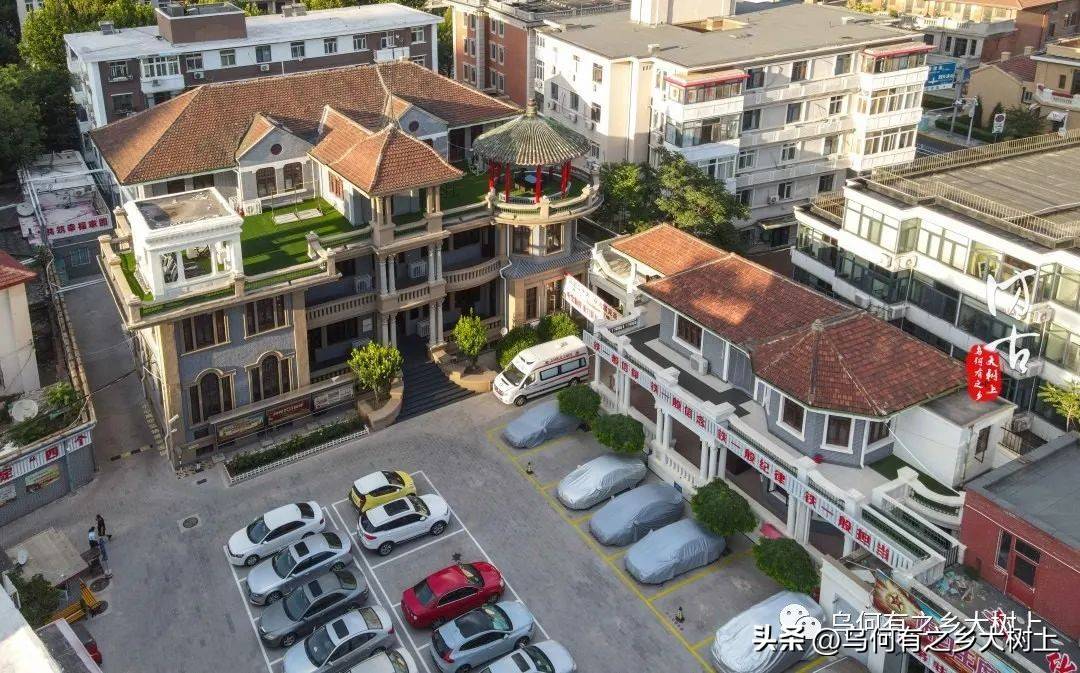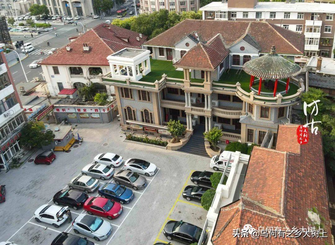 从今日的角度来看,这座建筑显得十分独特且颇具魅力。它占地7.9亩,建筑面积达2400平方米,被打造成一个美丽的花园住宅,楼体分为主楼、后楼、东楼和南楼四个部分。其中,主楼作为会客楼,采用混合结构,分为两层,局部则为三层,配有地下室,整个建筑的屋顶设计为多坡瓦,非常具有传统韵味,而墙面则用琉缸砖清水墙面装饰。特色十足的三层天台上,巧妙设置了三个风格迥异的凉亭,中间的凉亭采用罗马式屋顶和简化的柯林斯柱式,展现出西方建筑的典雅,东侧则是一个传统的攒尖顶圆亭,西侧又有一个较简洁的西洋凉亭,交相辉映。