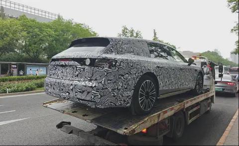 车尾部分,测试车的尾灯组灯壳、后包围和享界S9类似,换装了SUV款式的掀背式尾门和后扰流板,使得尾部更加立体饱满,提升后备厢的承载容积。由于测试车还处于中早期测试阶段,尾灯组还有临时的圆形灯腔。