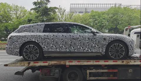 从外观来看,测试车处于严密的伪装之下,仍能从中窥见不少设计端倪。它的车头轮廓、局部细节和享界S9(图片配置询价)相似,两款车型的机顶盖、楔形前大灯、梯形进气口较为相似。