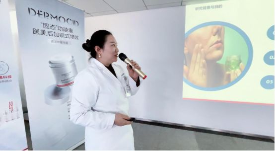 此外,遂宁市第一人民医院黄艳教授带来了《黄褐斑的多维解决方案(复合酸联合治疗)》的演讲,深入分析了黄褐斑的发病机制与治疗原理,并重点论述了德菲林复合酸在黄褐斑等斑敏痘皮肤疾病治疗中的高效与低复发优势。她分享了从基础治疗到改善修复的多维度黄褐斑管理前沿思路,并指出复合酸联合治疗是光电联合治疗黄褐斑的首选方案,能够进一步提高治疗效果,为患者提供更加全面的治疗方案。