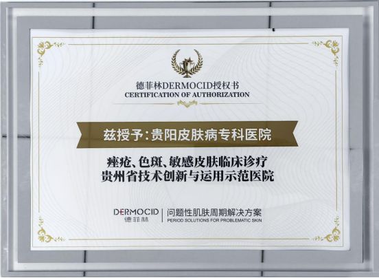值得一提的是,本次研讨会上,德菲林正式授权贵阳皮肤病专科医院为“痤疮、色斑、敏感皮肤临床诊疗贵州省技术创新与运用示范医院”。这一授牌标志着贵阳皮肤病专科医院将全线引进德菲林复合酸、水杨酸、传明酸等技术,致力于聚焦问题肌肤,满足大众多层次、高质量的就医需求,为患者提供安全、放心的解决方案。
